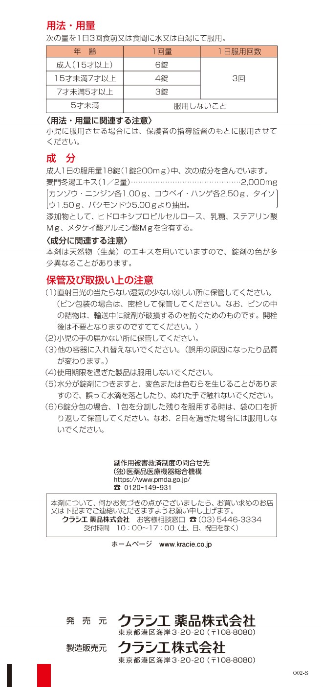 19.麦門冬湯エキス錠クラシエ